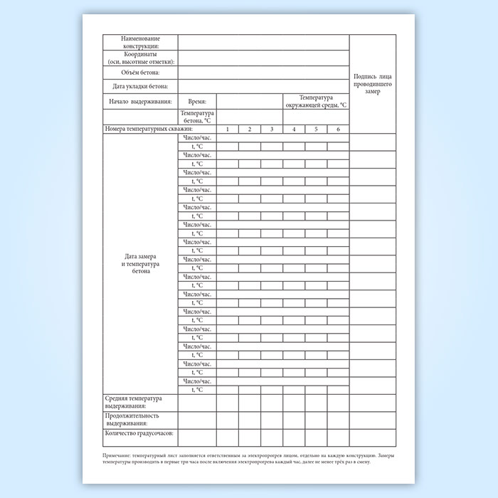 Журнал регистрации температуры бетона в монолитных конструкциях в Омске купить