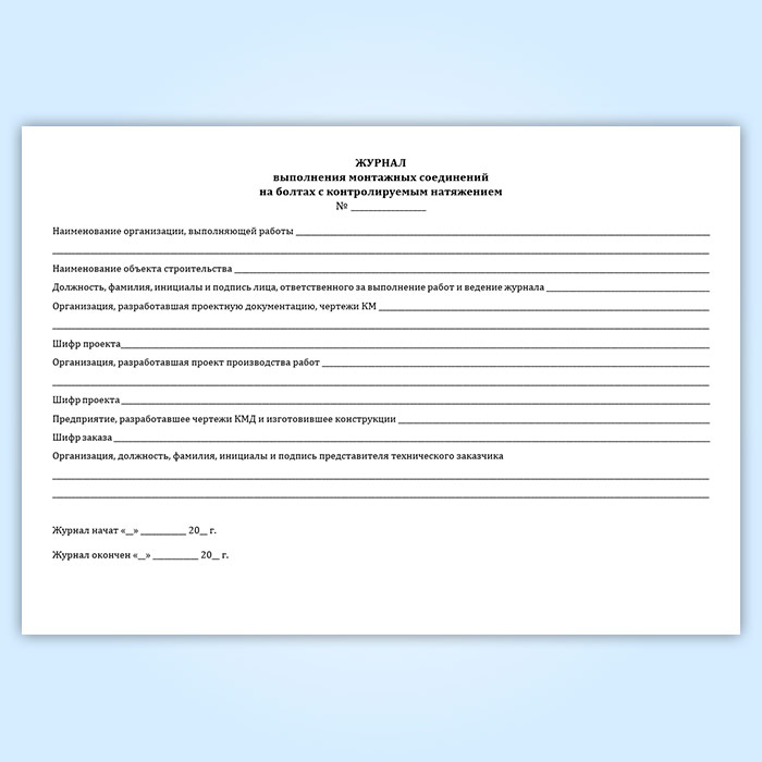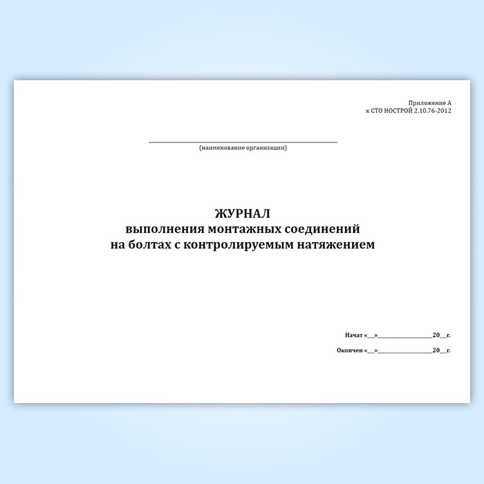 Журнал выполнения монтажных соединений на болтах с контролируемым натяжением (СТО НОСТРОЙ 2.10.76-2012) в Омске купить