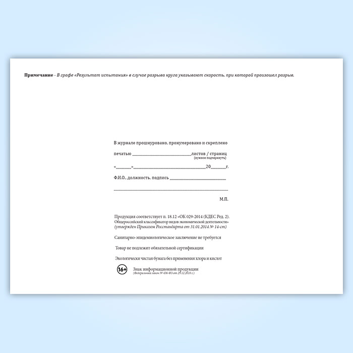 Журнал регистрации результатов испытаний абразивного инструмента в Омске купить