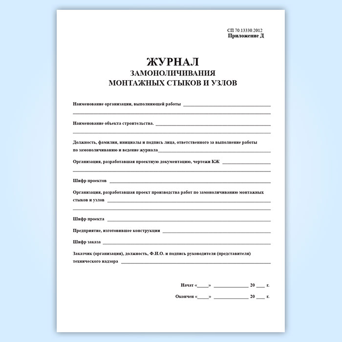 Журнал замоноличивания монтажных стыков и узлов в Омске купить