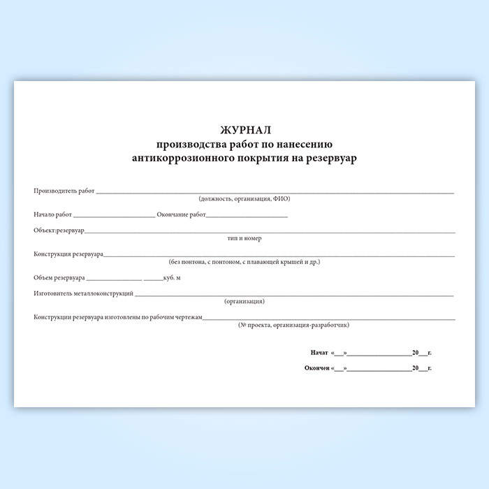 Журнал производства работ по нанесению антикоррозионного покрытия на резервуар в Омске купить