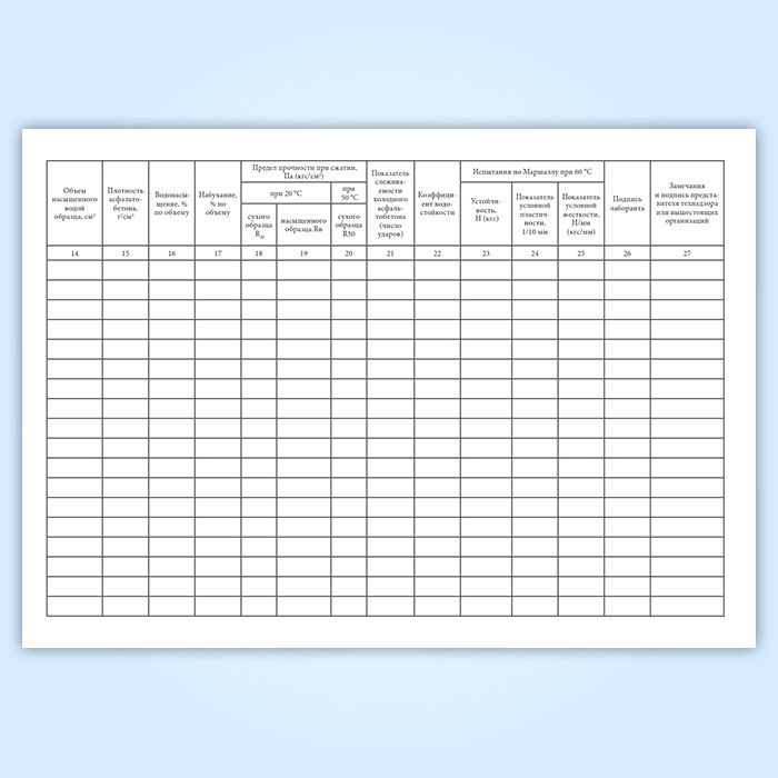 Журнал испытания проб асфальтобетонных смесей, взятых из смесителя в Омске купить