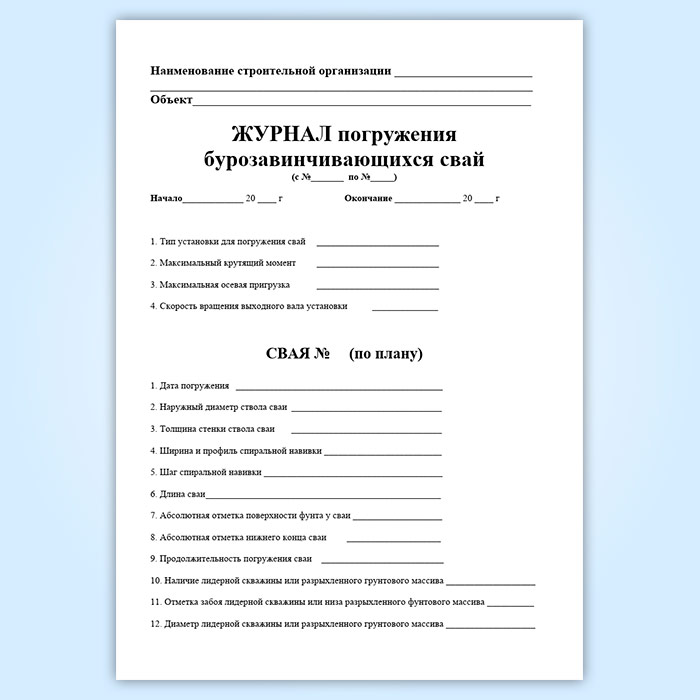Журнал погружения бурозавинчивающихся свай в Омске купить