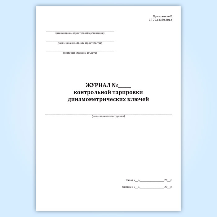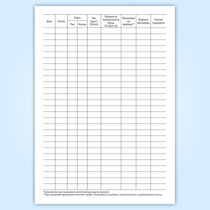 Журнал контрольной тарировки динамометрических ключей в Омске купить