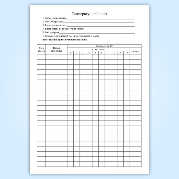 Журнал ухода за бетоном (с графиком продолжительности твердения) в Омске купить