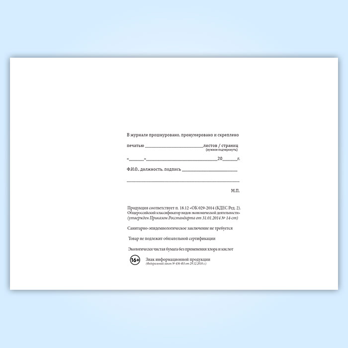 Вы получаете печатную продукцию прошнурованной и c местом для вашей печати в соответствии с действующими нормативными документами: