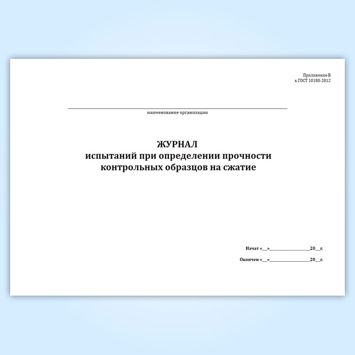 Журнал испытаний при определении прочности контрольных образцов на сжатие в Омске купить