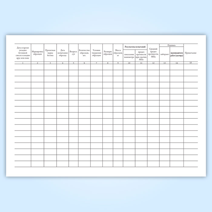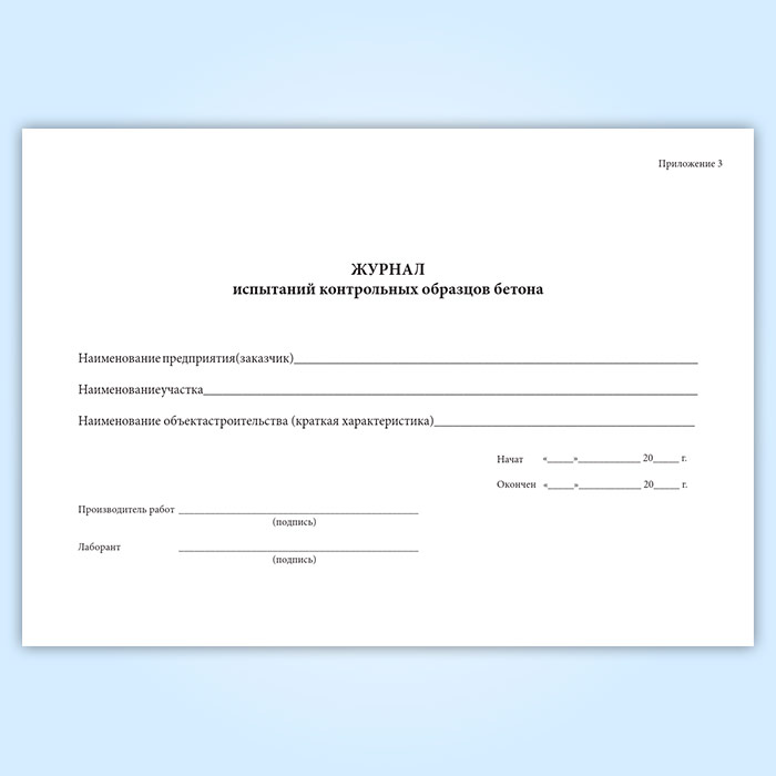 Журнал испытаний контрольных образцов бетона (ВСН 430-82) в Омске купить