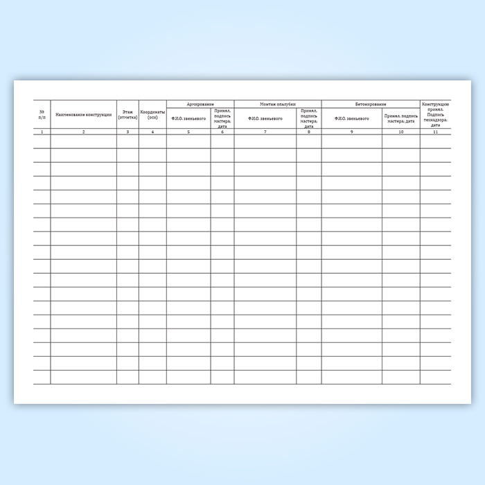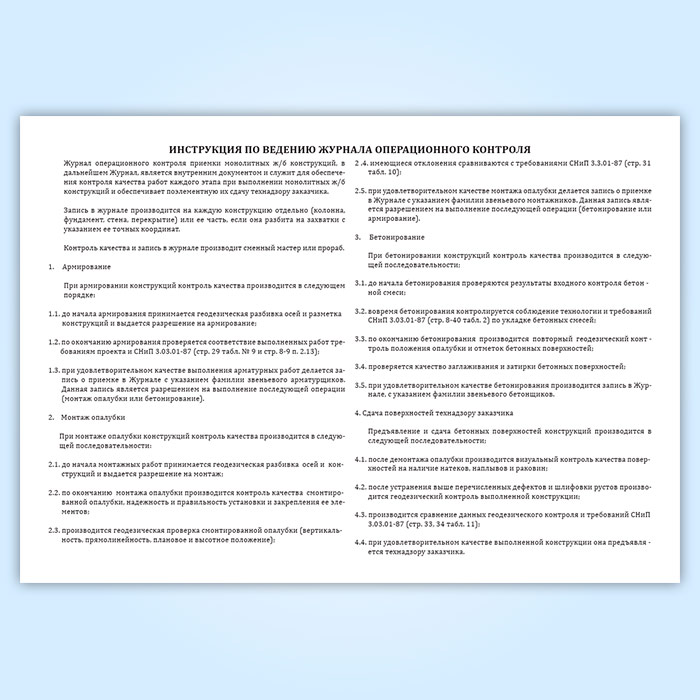 Журнал операционного контроля приемки монолитных железобетонных конструкций в Омске купить