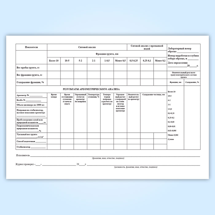 Журнал лабораторного определения гранулометрического (зернового) состава грунта в Омске купить