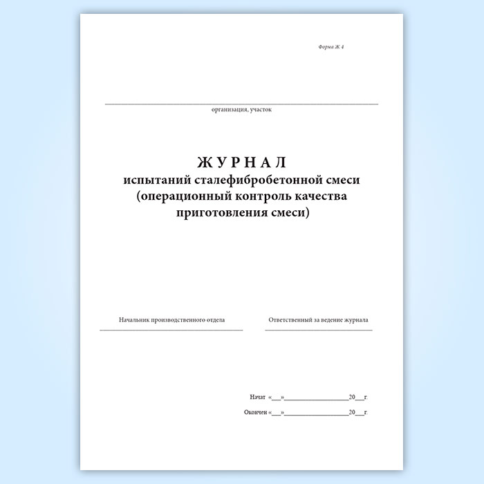 Журнал испытаний сталефибробетонной смеси (операционный контроль качества приготовления смеси) (форма Ж 4) в Омске купить