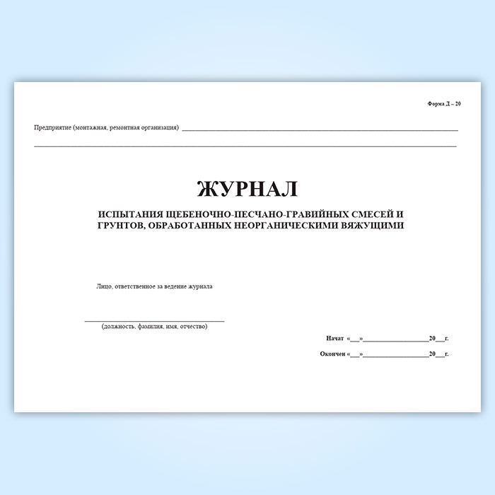 Журнал испытания щебеночно-песчано-гравийных смесей и грунтов, обработанных неорганическими вяжущими в Омске купить