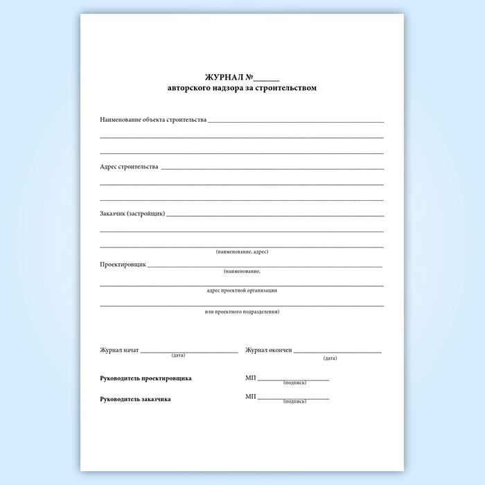 Журнал авторского надзора за строительством (СП 246.1325800.2016) в Омске купить