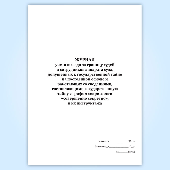 Журнал учета выезда за границу судей и сотрудников аппарата суда, допущенных к государственной тайне на постоянной основе и работающих со сведениями, составляющими государственную тайну с грифом секретности «совершенно секретно», и их инструктажа в Омске купить