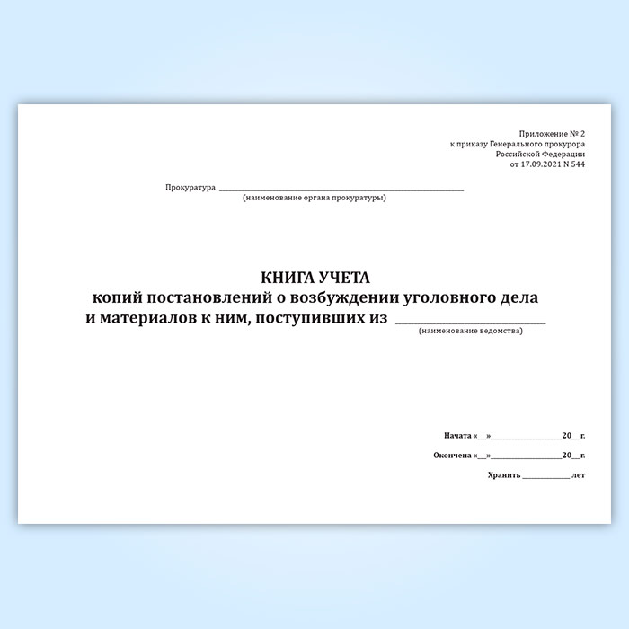 Книга учета копий постановлений о возбуждении уголовного дела и материалов к ним в Омске купить