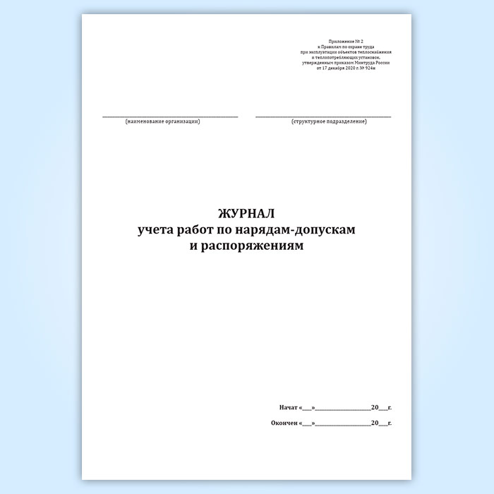 Журнал учета работ по нарядам-допускам и распоряжениям (для объектов теплоснабжения и теплопотребляющих установок) в Омске купить