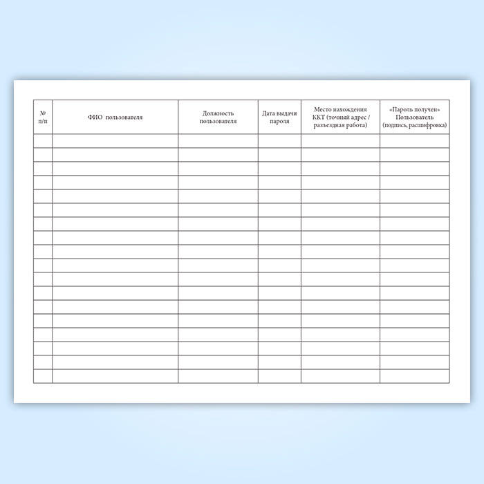 Журнал выдачи паролей для работы с контрольно-кассовой техникой (ККТ) в Омске купить