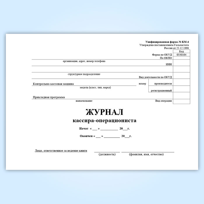 Журнал кассира-операциониста, горизонтальный (форма № КМ-4) в Омске купить