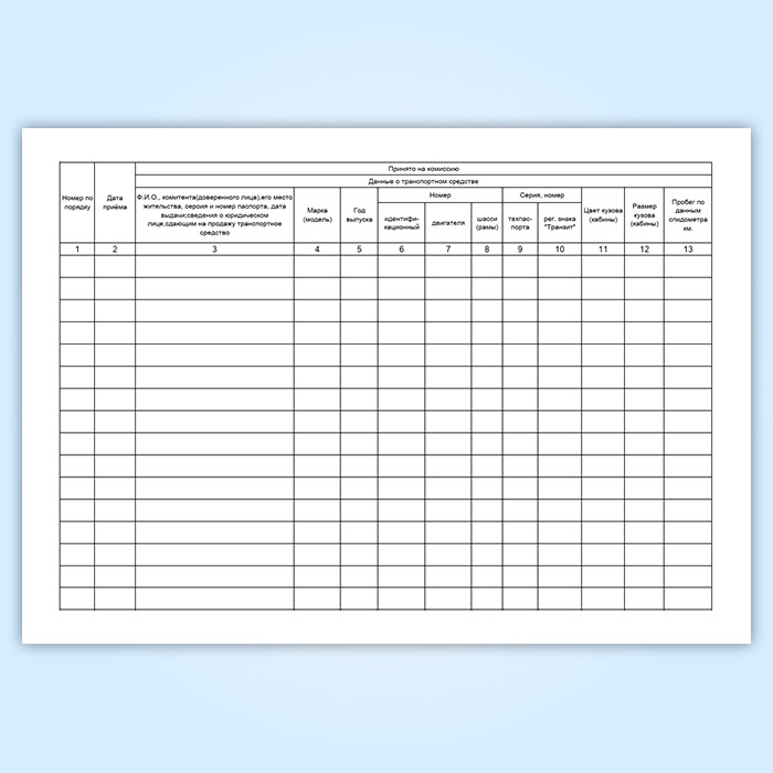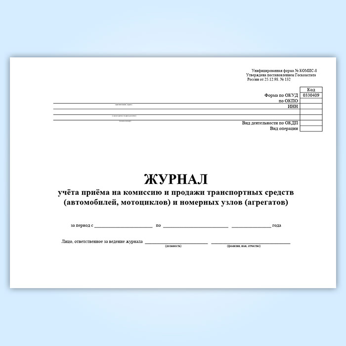 Журнал учета приема на комиссию и продажи транспортных средств (автомобилей, мотоциклов) и номерных узлов (агрегатов) (форма № КОМИС-8) в Омске купить