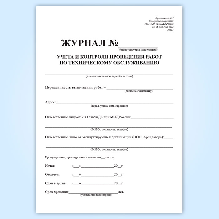 Журнал учета и контроля проведения работ по техническому обслуживанию в Омске купить