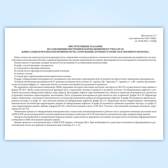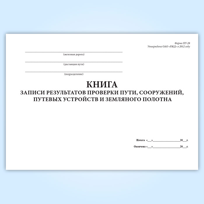 Книга записи результатов проверки пути, сооружений, путевых устройств и земляного полотна (форма ПУ-28) в Омске купить
