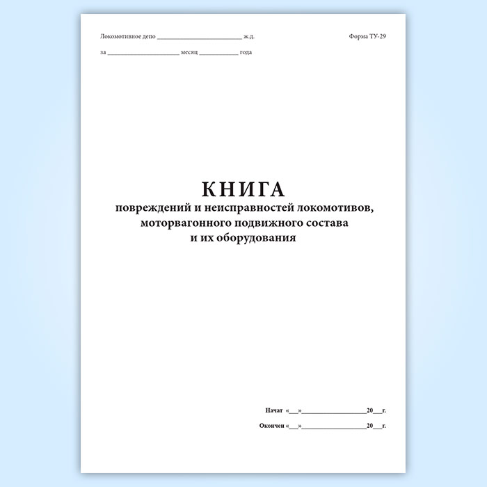 Книга повреждений и неисправностей локомотивов, моторвагонного подвижного состава и их оборудования (форма ТУ-29) в Омске купить