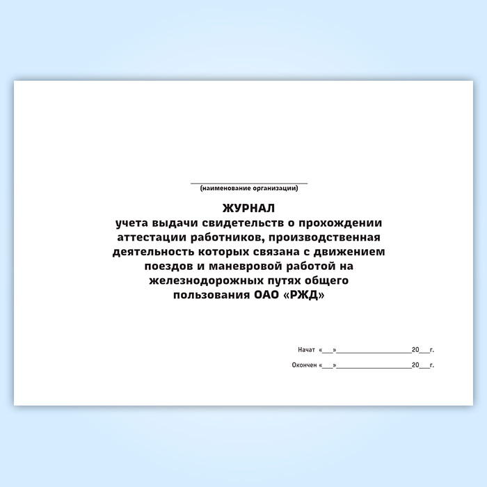 Журнал учета выдачи свидетельств о прохождении аттестации работников, производственная деятельность которых связана с движением поездов и маневровой работой на железнодорожных путях общего пользования ОАО «РЖД» в Омске купить