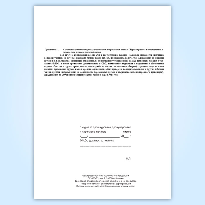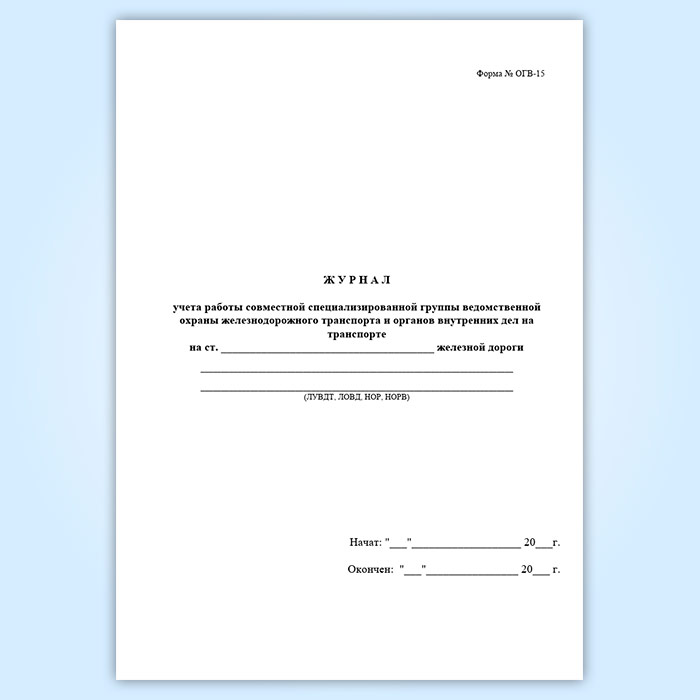 Журнал учета работы совместной специализированной группы ведомственной охраны железнодорожного транспорта и органов внутренних дел на транспорте (форма № ОГВ-15) в Омске купить