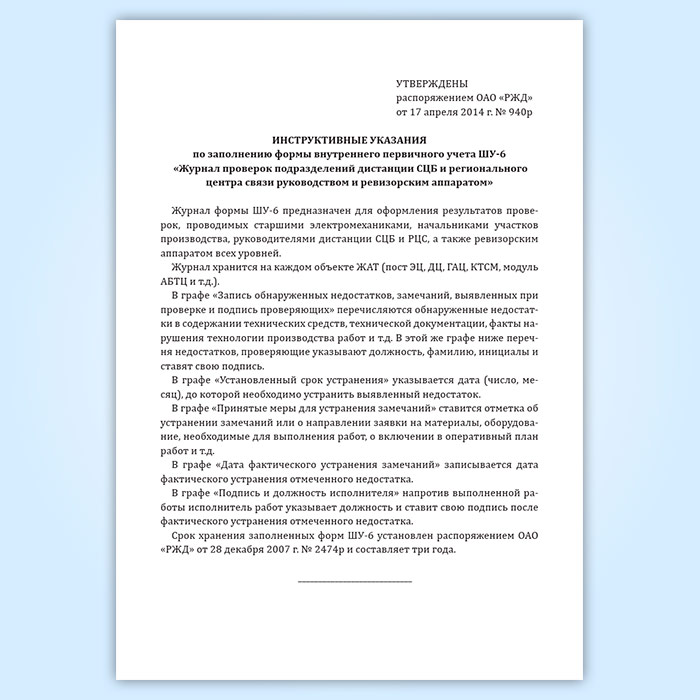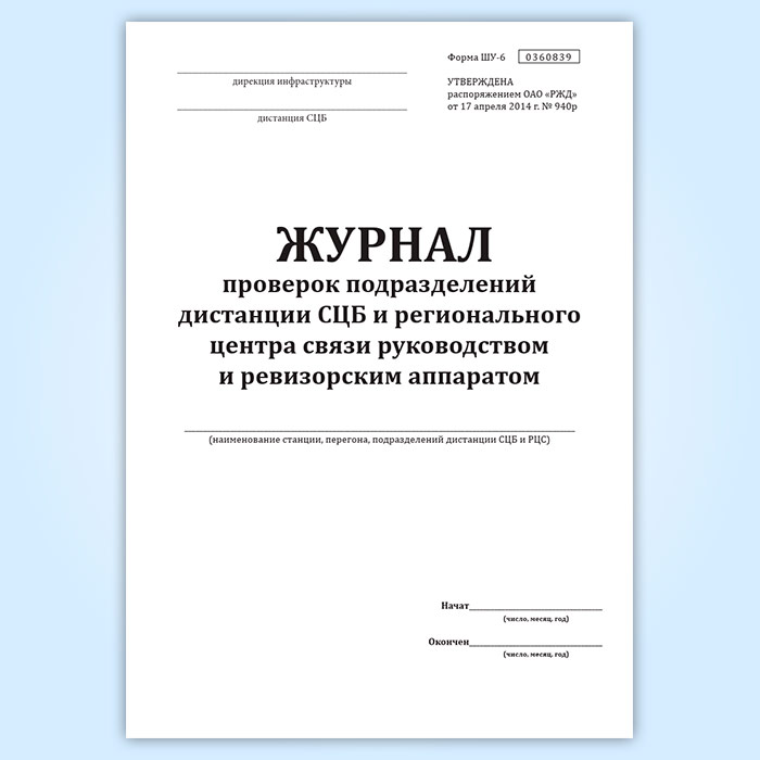 Журнал проверок подразделений дистанции СЦБ и регионального центра связи руководством и ревизорским аппаратом (форма ШУ-6) в Омске купить