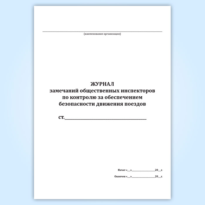 Журнал замечаний общественных инспекторов по контролю за обеспечением безопасности движения поездов в Омске купить