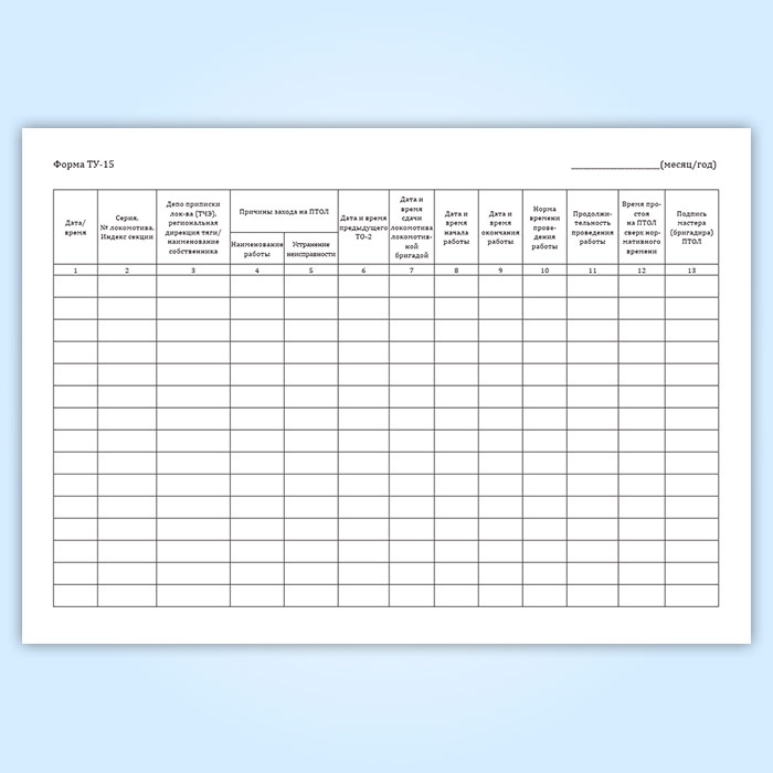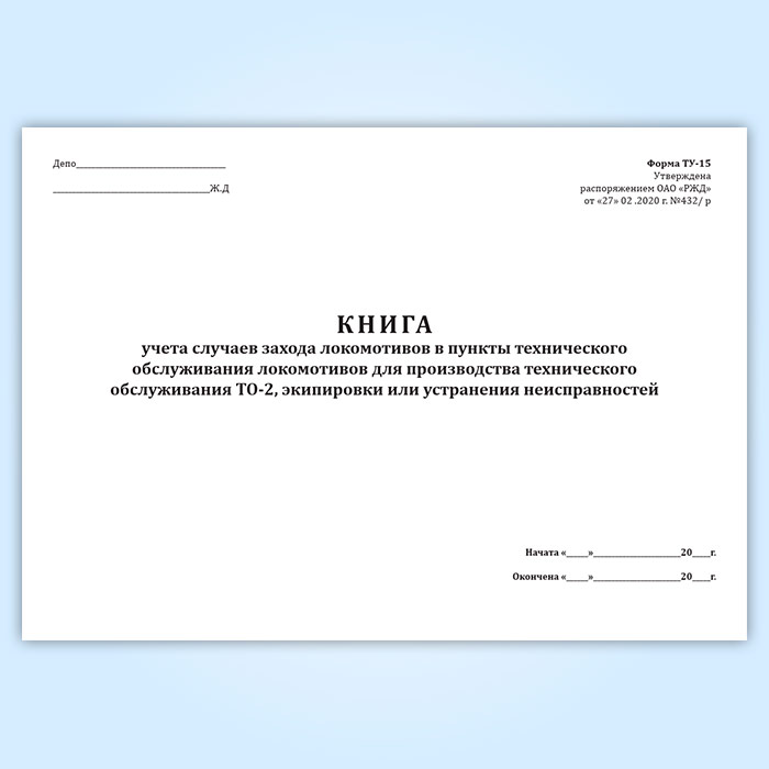 Книга учета случаев захода локомотивов в пункты технического обслуживания локомотивов для производства технического обслуживания ТО-2, экипировки или устранения неисправностей (форма ТУ-15) в Омске купить