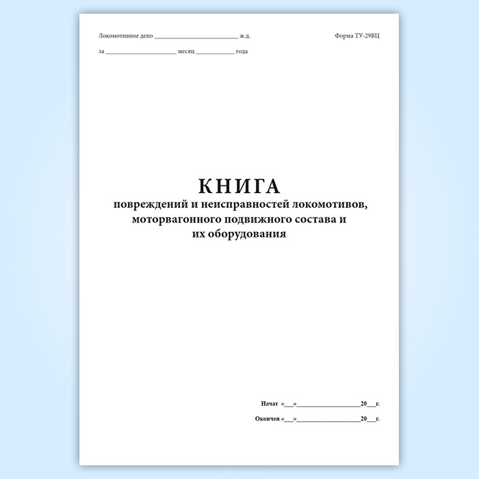 Книга повреждений и неисправностей локомотивов, моторвагонного подвижного состава и их оборудования (форма ТУ-29ВЦ) в Омске купить