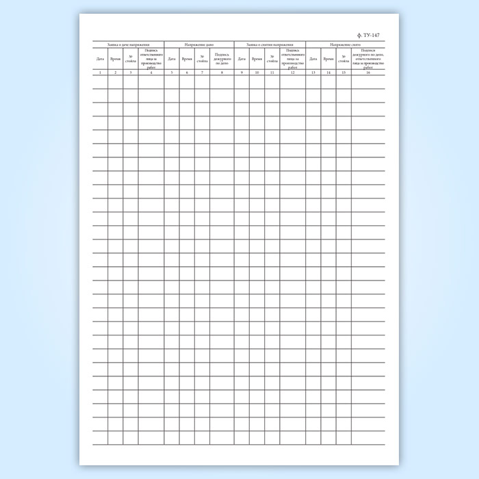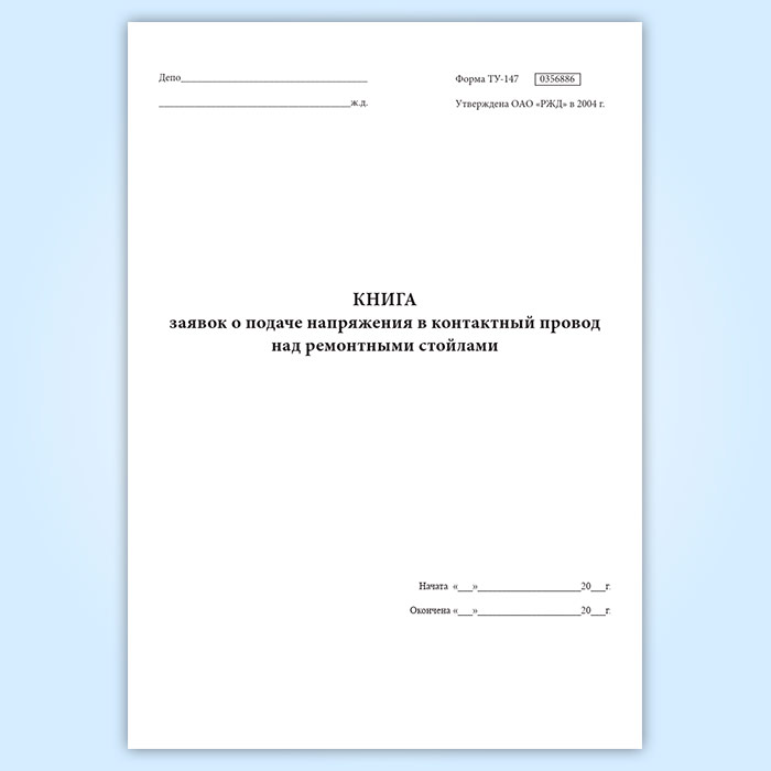 Книга заявок о подаче напряжения в контактный провод над ремонтными стойлами (форма ТУ-147) в Омске купить