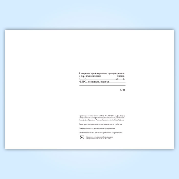 Вы получаете печатную продукцию прошнурованной и c местом для вашей печати в соответствии с действующими нормативными документами: