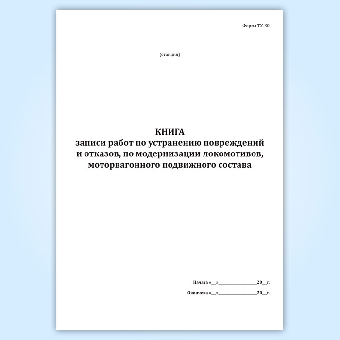 Книга записи работ по устранению повреждений и отказов, по модернизации локомотивов, моторвагонного подвижного состава (форма ТУ-30) в Омске купить