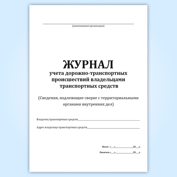 Журнал учета дорожно-транспортных происшествий владельцами транспортных средств (Сведения, подлежащие сверке с территориальными органами внутренних дел) в Омске купить