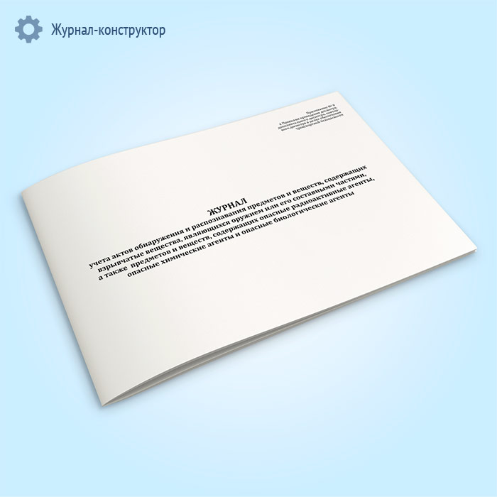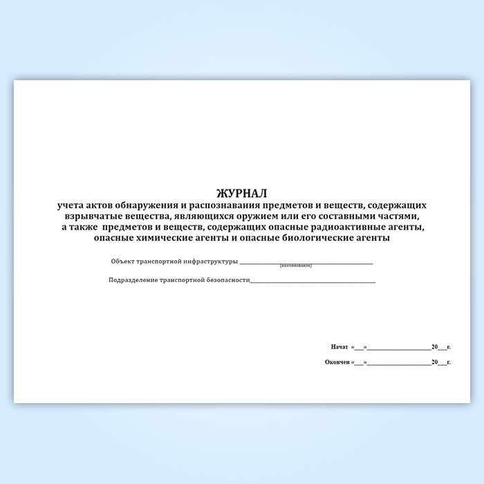 Журнал учета актов обнаружения и распознавания предметов и веществ, содержащих взрывчатые вещества, являющихся оружием или его составными частями, а также предметов и веществ, содержащих опасные радиоактивные агенты, опасные химические агенты и опасные биологические агенты в Омске купить