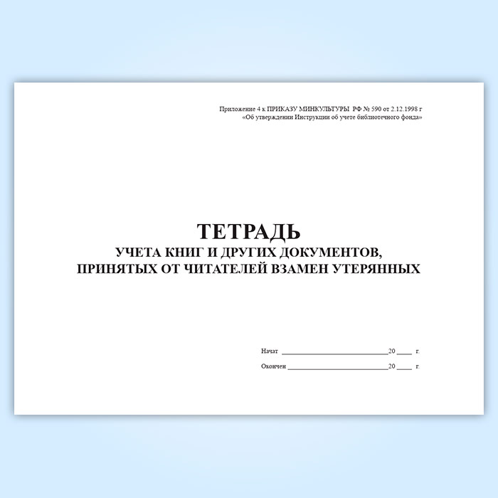 Тетрадь учета книг и других документов, принятых от читателей взамен утерянных в Омске купить