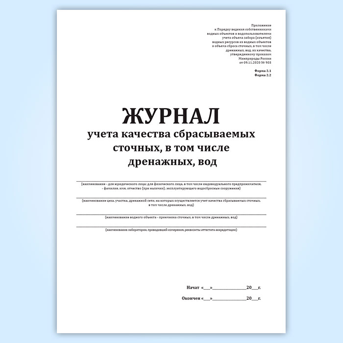 Журнал учета качества сбрасываемых сточных, в том числе дренажных, вод (форма 2.1, 2.2) в Омске купить