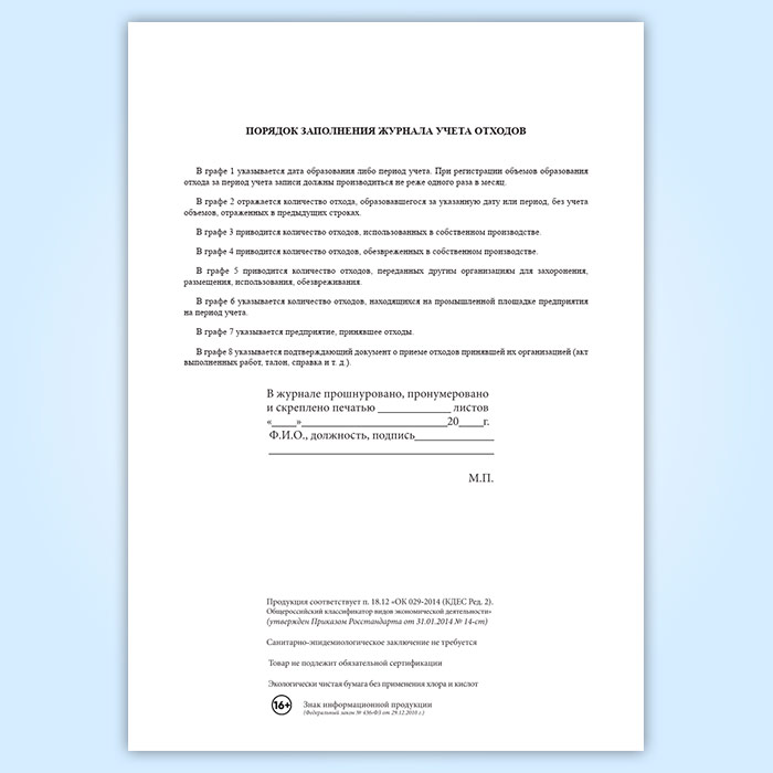 Журнал первичного учета отходов в Омске купить