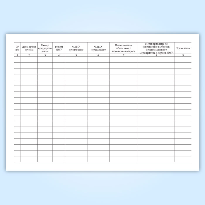 Журнал регистрации мероприятий по сокращению выбросов в период НМУ в Омске купить
