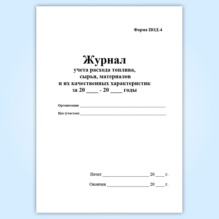 Журнал учета расхода топлива, сырья, материалов и их качественных характеристик (форма ПОД-4) в Омске купить