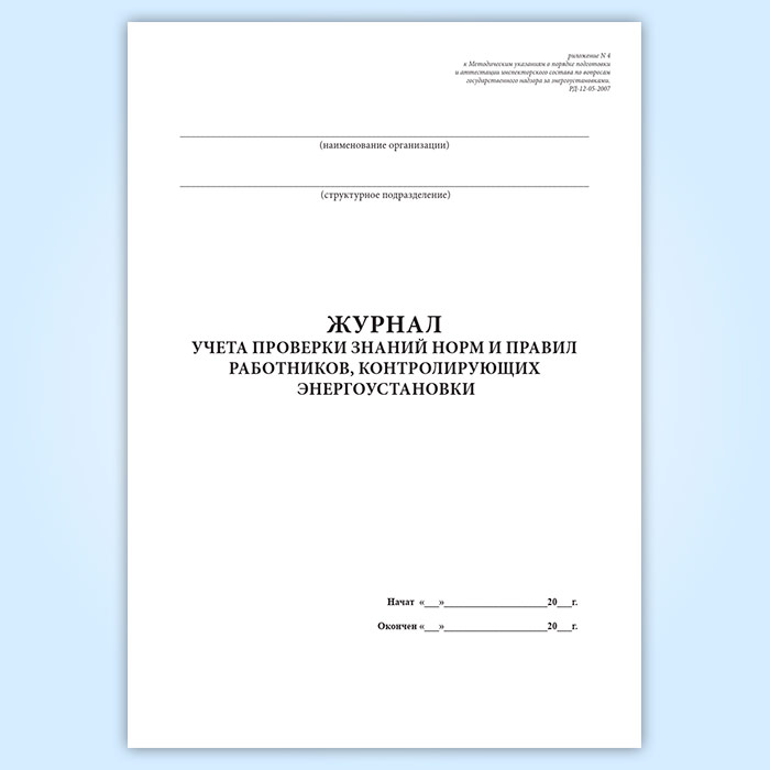 Журнал учета проверки знаний норм и правил работников, контролирующих энергоустановки в Омске купить