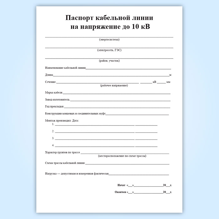Паспорт кабельной линии на напряжение до 10 кВ в Омске купить