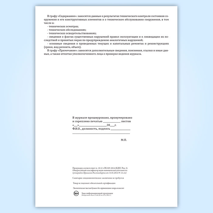 Технический журнал по эксплуатации гидротехнического сооружения в Омске купить