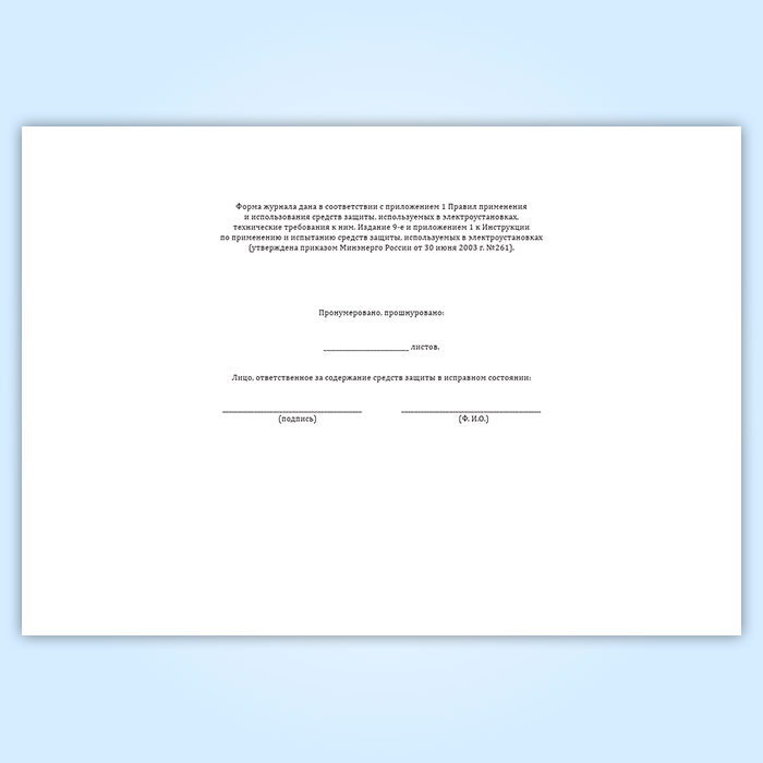 Журнал учета и содержания средств защиты (используемых в электроустановках) в Омске купить