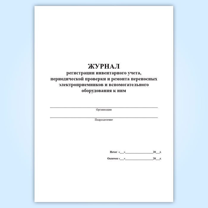 Журнал регистрации инвентарного учета, периодической проверки и ремонта переносных электроприемников и вспомогательного оборудования к ним в Омске купить