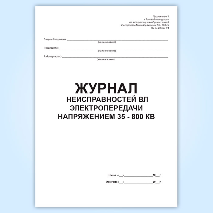 Журнал учета работ на ВЛ электропередачи напряжением 35-800 квВ в Омске купить
