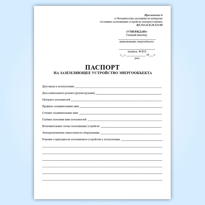Паспорт на заземляющее устройство энергообъекта в Омске купить