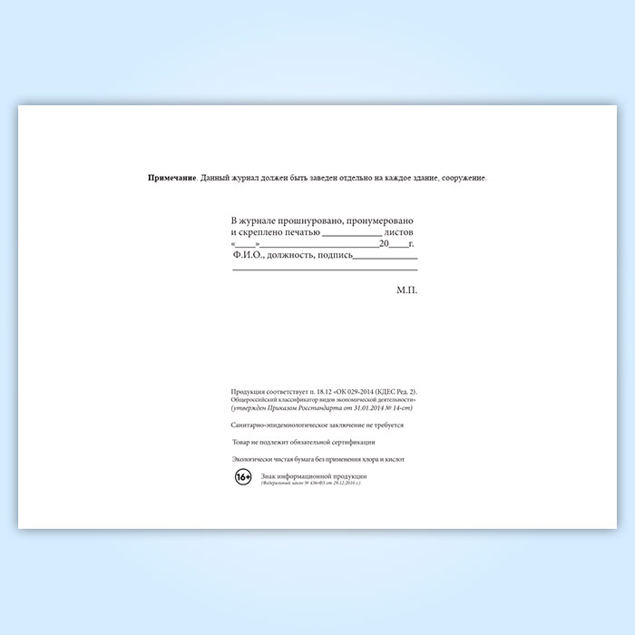 Вы получаете печатную продукцию прошнурованной и c местом для вашей печати в соответствии с действующими нормативными документами: